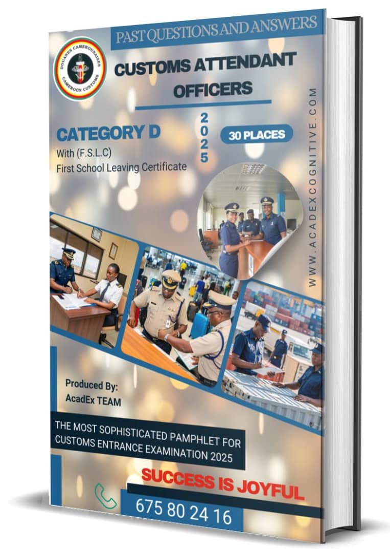 This comprehensive guide is a must-have for all aspirants preparing for the highly competitive Customs Concours in Cameroon. Carefully compiled and reviewed by seasoned experts in customs, public administration, and competitive exam coaching, this book offers a reliable and accurate resource to help candidates understand the exam structure and sharpen their answering techniques.